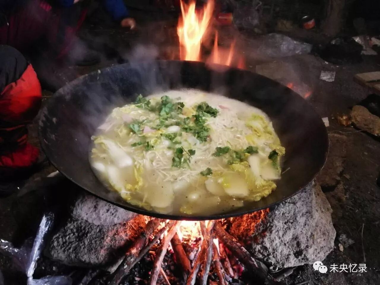 不过挺幸运遇见这一锅,才有后面的一锅煮,再也不用争着吃,守着锅~~~边吃边烤火,刚开始烟雾弥漫,后来渐渐消散。