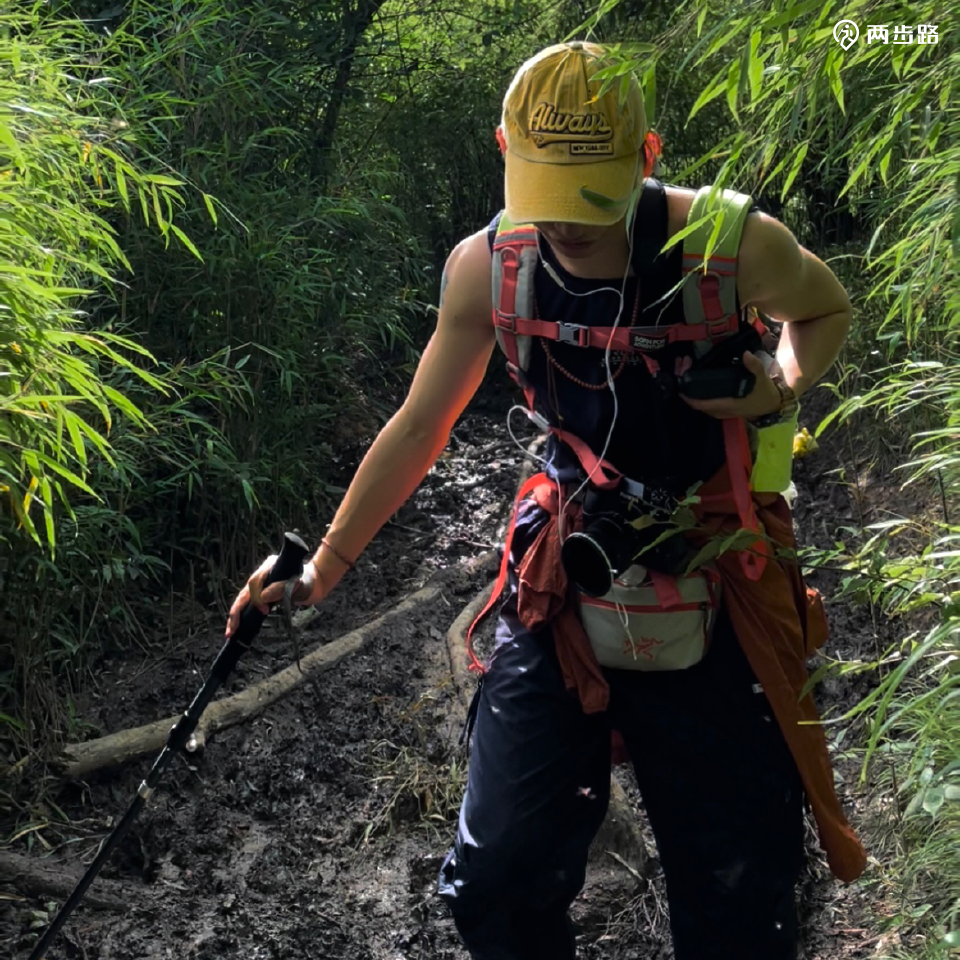 因为下了雨,加上也是野路,满地的稀泥加陡坡拖缓了妹妹的脚步,急得我一边教她一边鼓励她,后来我都已经没有耐心了,甚至不想说话了。走在前面的超哥似乎也知道了,他紧皱眉头,来到妹妹身边,接过她的水壶,教她该如何下坡。
