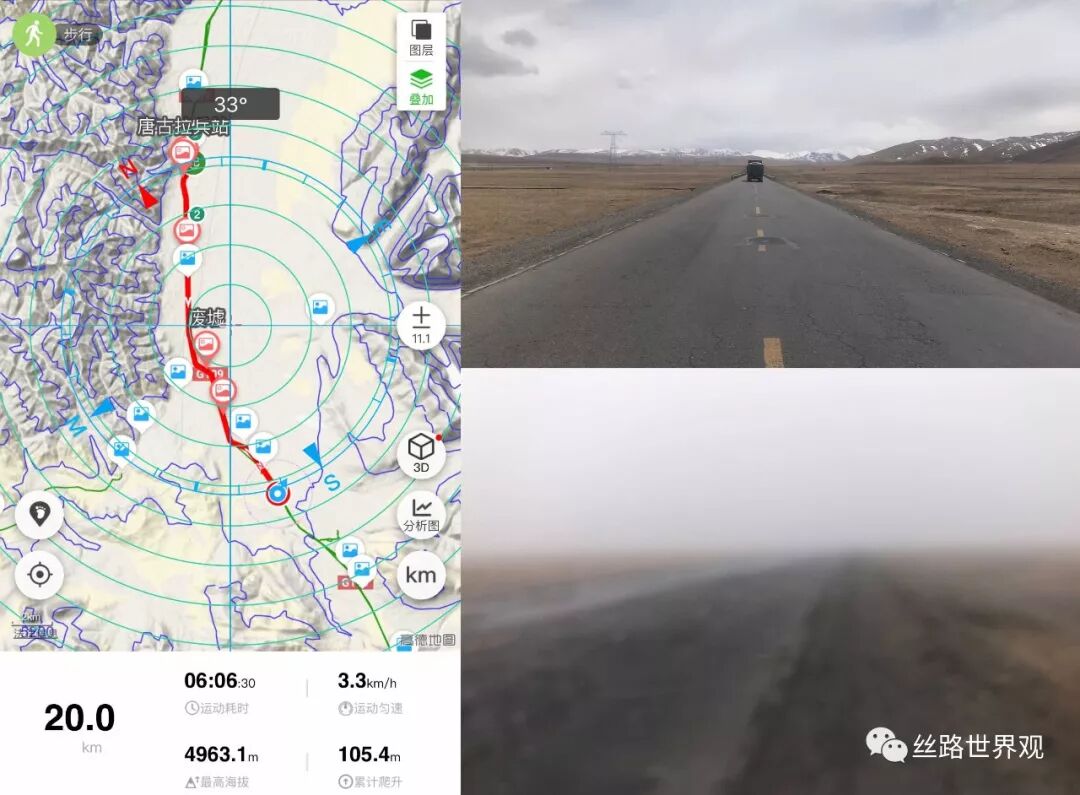 西大滩-望昆站: 受孽的一天,海拔越来越高,身体感觉被掏空。自打格尔木市区一路行进基本都是在向上走,这种状况要一直持续到那曲地区。进入西大滩后,不仅要面对海拔的逐渐提升,还有西北风和暴雪在等着我,最令人难受的就是,这里的风无论你走在那个角度的路径上,风总是能从侧面或是正面吹过来,简直不可思议。