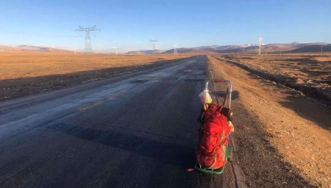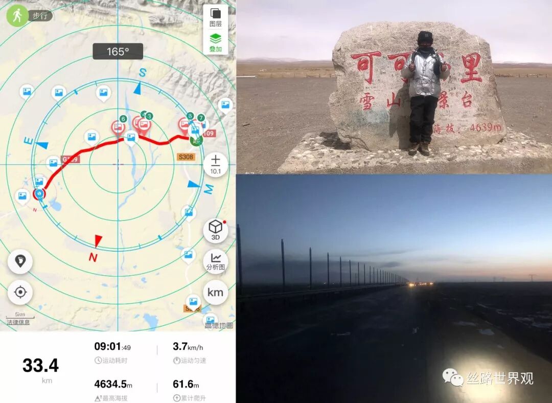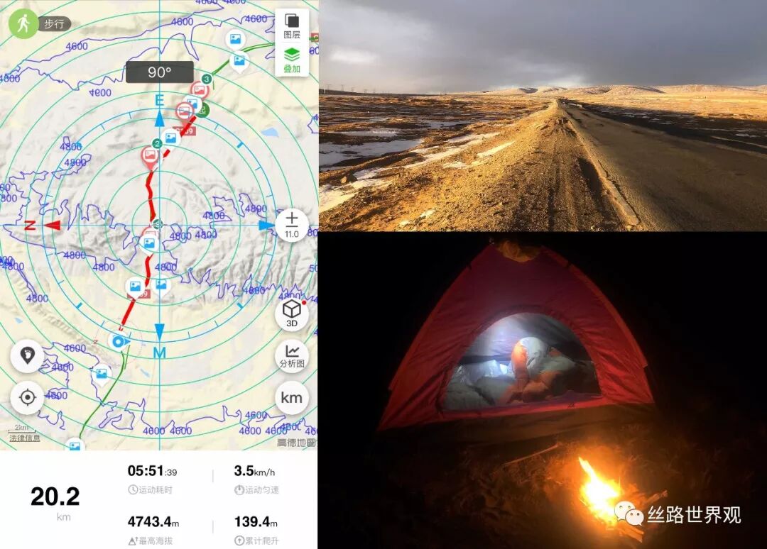 格尔木市-昆仑山入口: 背着140斤的行囊走了35.4公里,感觉肩膀都要脱臼了,越走越感觉不对劲。晚上在昆仑山入口后的一个加油站露营,期间在加油站里面补给和充电,加油站的工作人员都很热情,为了减负我把一些全新的器材送给了他们。