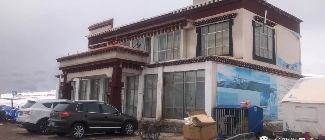 出了昆仑山垭口,大于三四公里的地方,有个叫三江源的地方,这里是个遗弃的工地,有彩钢房和帐篷,还有废弃的汽车,甚至连厨房都有,条件比较恶劣,大雪覆盖,但个理想的露营地。