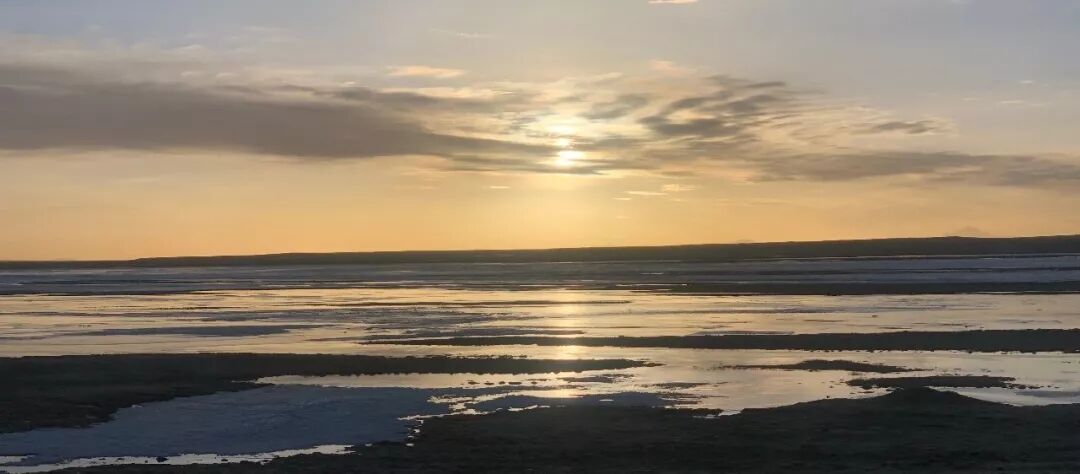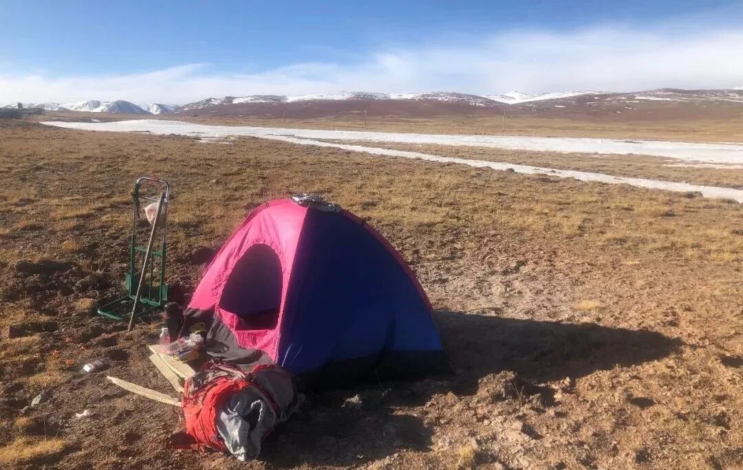 不冻泉-可可西里索南达杰保护站: 累了偷懒了,墨迹到下午才从温柔乡出发,惊喜又惊险的一天。白天是进入可可西里的喜悦,晚上被小车枉顾人命的惊恐,我明明都走在路肩边缘,还是有无良司机,枉顾人命超车碾压过来,还好躲得快。不过在这里人命又算得上什么呢?最恐怖的还是过四公里的冻土软基路段,那路烂的,那路窄的,我晚上走了四五个小时才过。到了索南达杰保护站已经是凌晨三点了,不想打扰他们于是我就在他们门口露营了。天好冷手好冻,晚上睡觉好冰冷,白天才发现我旁边居然是个湿地。