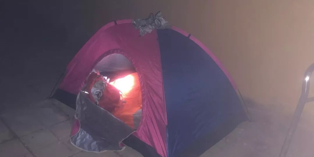 原本现在望昆站借宿,但实在走不动了,就在车站前雪地里露营。