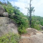 本来由于受台风影响,天气不好及人数不够,已经取消活动不去了,后面不知道什么情况,阿标又启动活动要去了,人员很快一下子就满了,由于天气很差,所以私底下我对这次的活动信心不是很大,有点担心,最后抱着试试的态度还是启程出发,心里在想,万一过去到那边下暴雨,有山洪再撤退就好,也可以临时改福州的路线,应该是问题不大。2024年9月7日下午3:50我们海沧启动出发,去园博园和同安接人,然后同安上高速。期间,一大早就发生了紧急状况,任朱奇他老婆知道他要去18重溪,昨天晚上做了一个噩梦,他老婆说从来没有做过这样子的可怕噩梦,死活不肯让他去十八重溪,一大早在群里面发说去不了,完蛋了,一下子缺一个人,怎么办?我马上想到了羊羊,羊羊由于已经跟生如夏花约好了去福州户外,不好拒绝,就没办法参加。后面我叫了萧哥,他竟然说可以,就什么装备都没有的情况下跟着我上十八重溪考试去了,活动结束后,萧哥说此生难忘的一次溯溪活动,接完人之后我们在同安出发,司机说他认识厦门很多户外的人,以前有给他们拉过人,中巴车一路上都是走在货车车道,不敢走快车道,所以我们到目的地比较慢,花了3.5小时,出镜洋高速口,路的两边很多饭店,大约走了两公里外路边好几家快餐,本来想吃炒菜,老板说没有炒菜,考虑到大家都不想往回掉头走,明天又要那么早出发,就简易地吃了一下快餐就前往露营点了,本来露营点是选择在方世培故居,由于小卢有来过,说天竺寺可以露营,再加上吃饭的时候,饭店的老板也有说天竺寺允许别人住,我们就抱着试试的态度过去看了一下,后面就选择在天竺寺寺庙露营,在户外露营地选择上的话,这边可以算得上是五星级的,有卫生间,热水器,风扇,空调,美哉,足矣,有一部分的人没有跟着我们进到房间里面睡觉,在外面搭帐篷就比较闷热。由于换个位置睡觉,大家比较睡不着,整个晚上我大约只睡了一个小时,反正都睡不着,就想着早点起来。我在凌晨2:40的时候就开灯叫大家起床准备,大家收拾好行装,差不多3:40出发,从大化山山脚下开始登山。这条线路非常难走,是比较大的石头加土路的马路,由于受雨水冲刷,石头都露出来了,车子没办法往上开,我们让司机开了一段,后面开不上去,司机的离合器都烧臭了,还好没有坏,走了1km之后,大塌方出现了,一路上好几个塌方点,大约走了6km之后,我们到达了山顶,在山顶发现一辆大巴车和一辆越野车,感觉很久没有人开了,我们大家就在猜,会不会由于载人到山上来户外?然后下大雨发生塌方了,就回不去了,车子只能报废在这里。早上比较早就到山顶水库的位置,怕冷,考虑到安全第一,我们选择高绕乌江水库的路线,乌江水库高绕的路线,前半程比较好走,后半程很陡,有落石,土质疏松,所以在18重溪户外需要非常小心,防止掉崖。