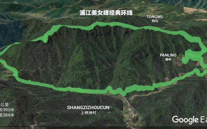 浦江美女峰经典环线,全程9.5公里,海拔最低384米,海拔最高993米。