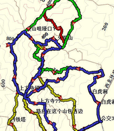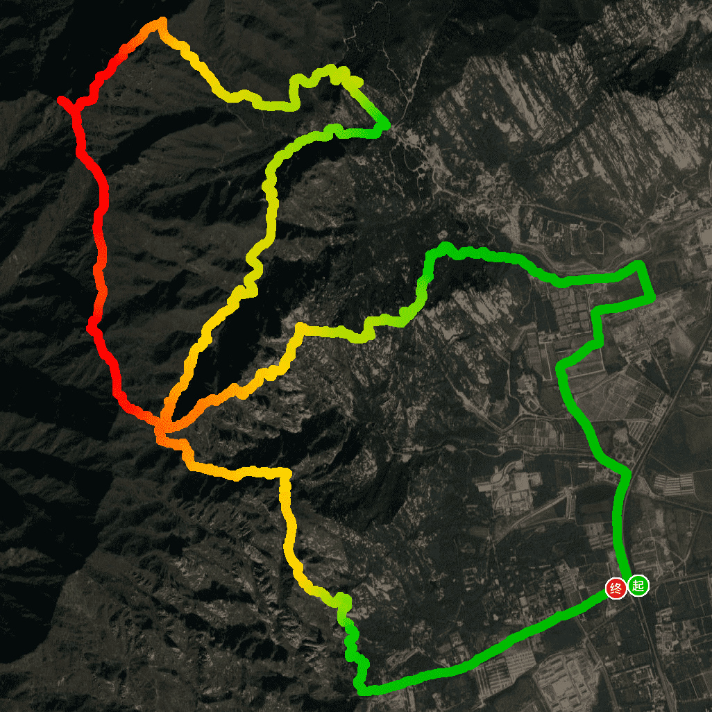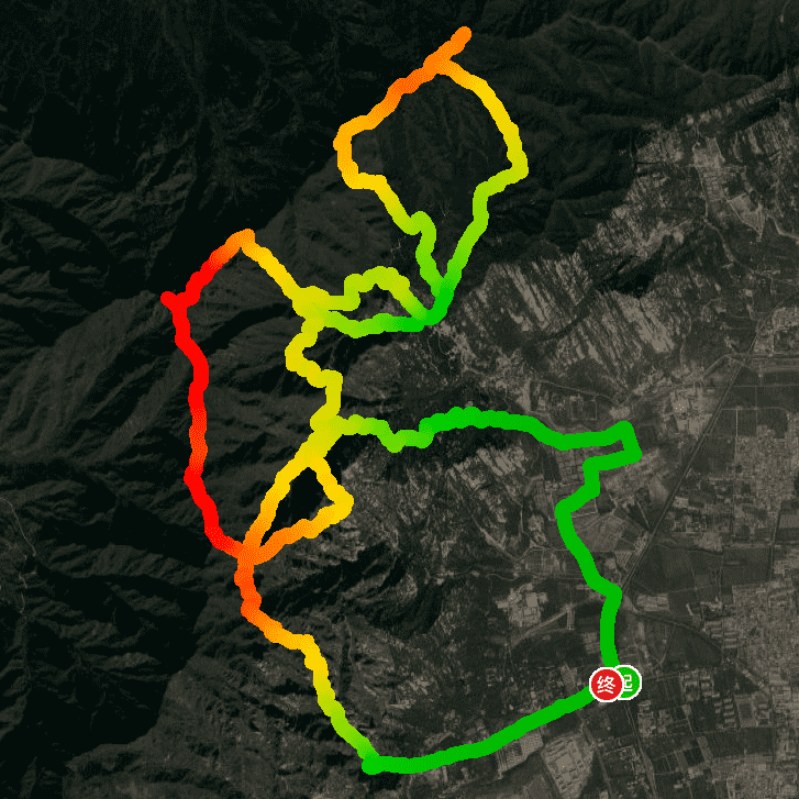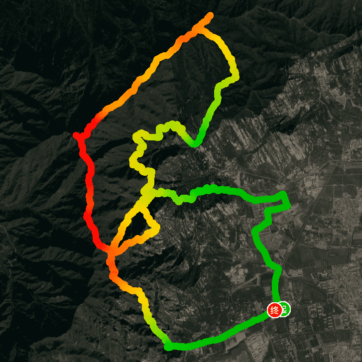 B队(强度2.0):凤凰岭公交车站-佛山陵园-白虎涧三岔1-不死葫芦套-白虎涧四岔-上方寺四岔-上方寺垭口-驻跸山三岔-驻跸山-驻跸山三岔-流村垭口-尖山咀三岔1-尖山咀三岔2-尖山咀-尖山咀三岔2-元宝寺-房车营地-白虎涧三岔4-火焰山-驻跸四岔-白虎涧三岔2-白虎涧四岔-宫保石寨-倚山口-飞来石塔-上方寺四岔-上方寺三岔-熬狱沟-道德峰-龙泉寺-凤凰岭东门-凤凰岭公交车站