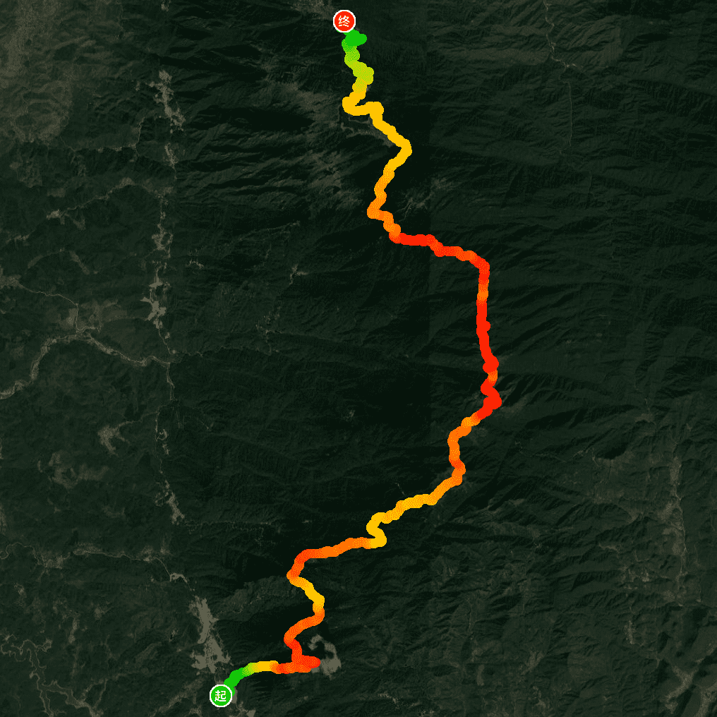 全程约37km,爬升约2350m,最高海拔1593m,徒步两天完成。