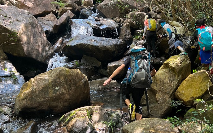 1. 登山鞋和溯溪鞋(必备)、头盔、溯溪包或双肩背包(必备)、登山杖、头灯/电筒(必备)、手套、垃圾袋、防晒帽、防晒油、手机(带好充电宝)。