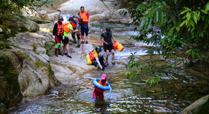 1.防水包(必备)、溯溪鞋或解放鞋(必备)、安全帽(必备)、护膝、护肘、换洗衣服(必备)、雨具(必备)、头灯/电筒(必备、手套(必备)、垃圾袋、太阳帽、太阳镜、防晒油、备用电池(必备)、手机(带好备用电池)。