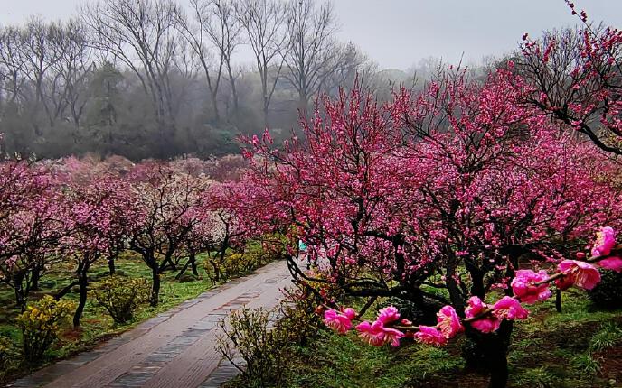 梅花山已进入赏梅高峰期,园内各种梅花争相绽放、暗香浮动。