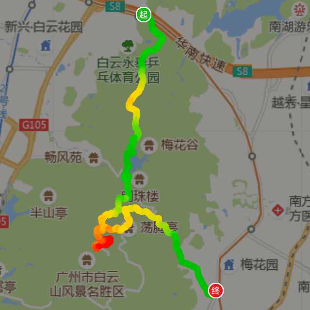 路线:永泰上,五雷岭,黄婆洞水库,龙虎岗,摩星岭,梅花园下,约10~12公里,爬升比较大。