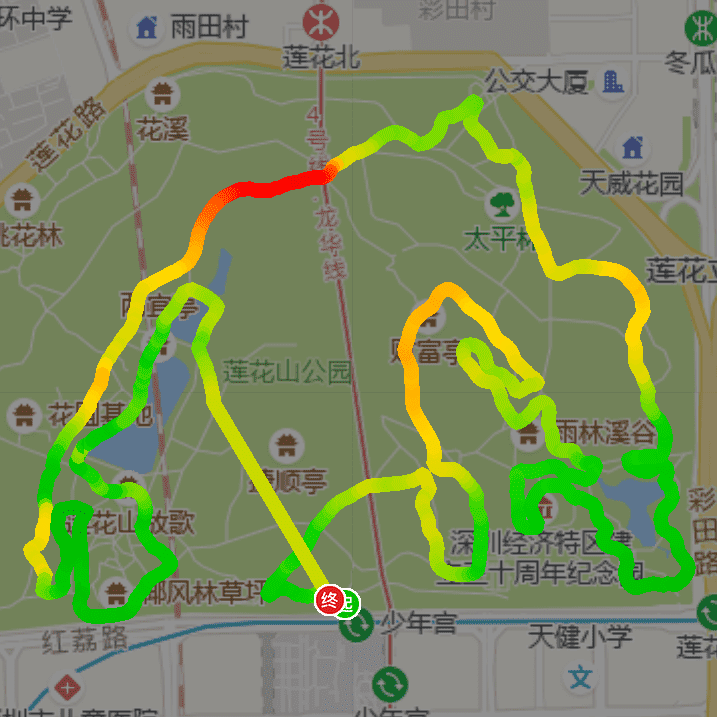 【线路】: 少年宫F1出口(19:15自我介绍)---上天桥---入园----第一个洗手间---- 警务室----大半圆---小半圆---广场舞场---关山月后胡锦tao植树处(约19:47分到停2分钟)--- 莲花村地铁d口8:00---健美操场-- -林荫小道---小爬坡--- 洗手间-(休息两分钟可以去洗手间)--停车场有线电视台入口---- 爬坡----长下坡-- --婚介所--椰树林---- -风筝广场 (休息2分钟)----湖边商店----绕湖一圈---少年宫F1出口。