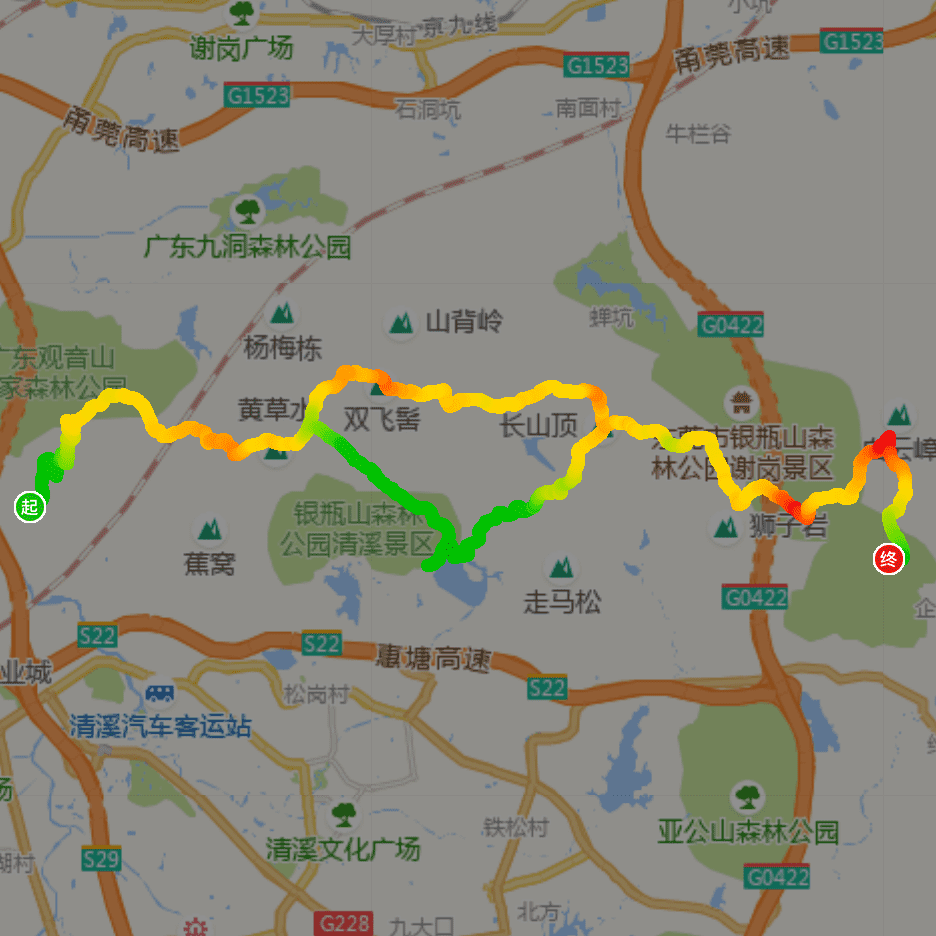 方案一:全程约29公里,爬升约2700m,轻装一日速穿,天气炎热,预估用时11~12小时。计划行走路线简介:罗马村(始)-观音山-黄草水-上九栋-双飞髻-三架笔-蝉坑顶-长山顶-九尾嶂顶-狮子岩-银屏咀-白云嶂