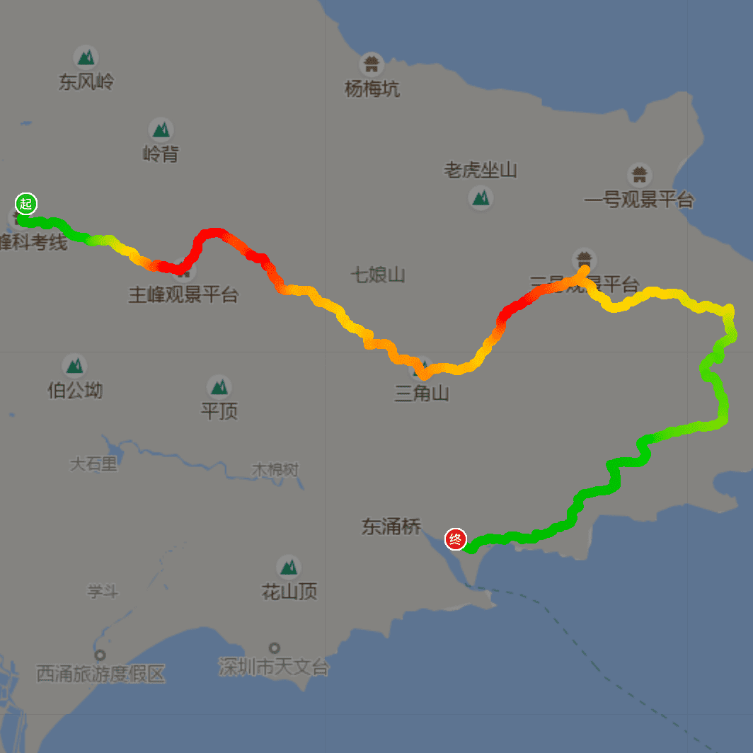 全程约23公里,计划10小时完成,最高海拔867米,累计爬升1500米,累计下降1270米,18-50岁能够轻松完成梧桐山登顶身体健康人士都可以报名!