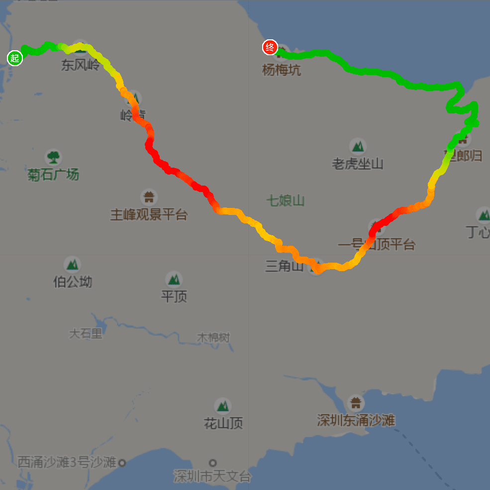 从禾塘湿地公园处开始登山,然后连续穿越七娘山七大山头,再走大雁顶,最终下到杨梅坑,全程共20公里左右,最高海拔867.4米。