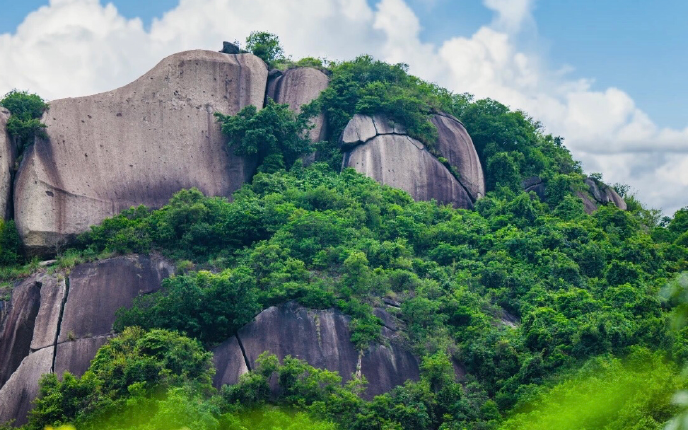 亚婆髻,位于宝安和光明之间,是一座海拔仅有300米左右的小山。它是凤凰山的附属山峰,山顶由裸露的花岗岩构成。由于没有植物的遮挡,视野非常的好。 通往山顶的路主要有2条,北边的一条需借助铁链而上,南面为一线天。 因为山峰两边微隆,有点像人的肩膀,中间是圆形巨石,像古代女性的发髻,因此得名大髻婆山。(总爬升500多米,请自行评估体能)