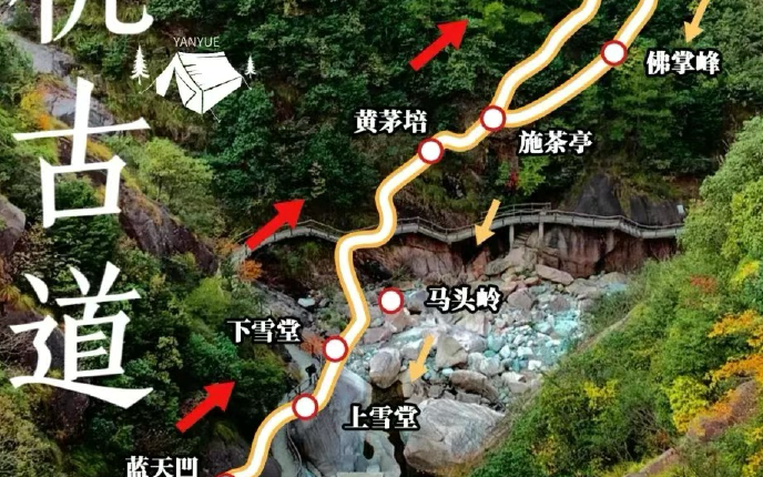 1. 登山鞋或军胶(必备)、双肩背包(必备)、登山杖、雨具(必备)、头灯/电筒(必备)、手套、垃圾袋、防晒帽、防晒油、手机(带好充电宝)。