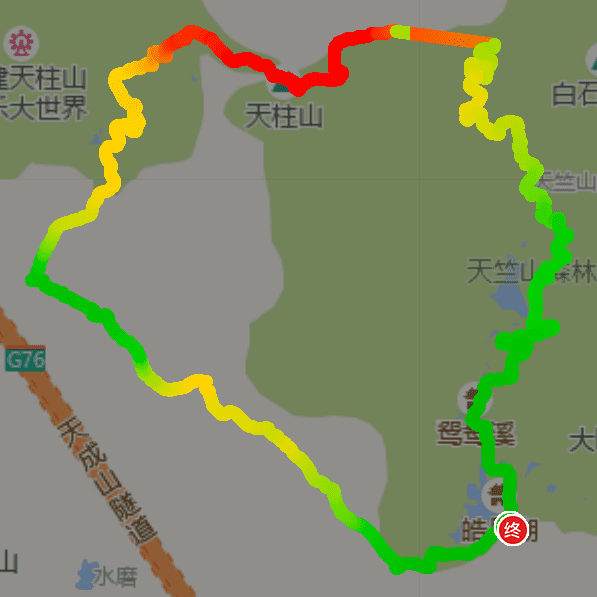 - 天竺山西门—三界碑—水渠—天柱山网红吊桥—观海楼—龙脊
