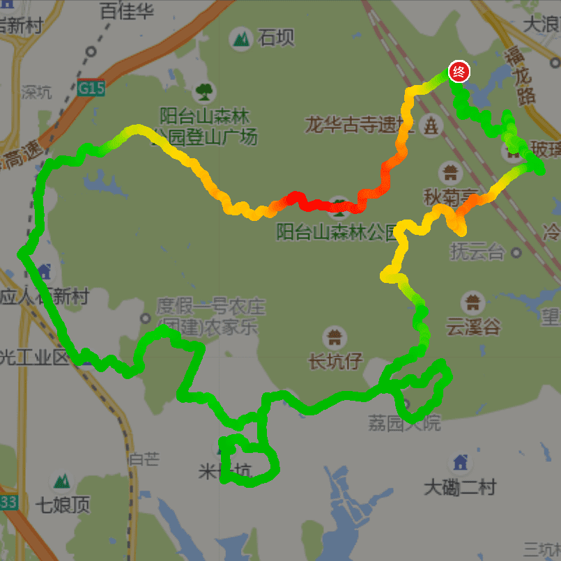 阳台山画地图,休闲小长线徒步,路线为台阶、土路、绿道、城市道路等混合路段,平时不运动基本不爬山的,或喜欢自由飞的不建议参加。