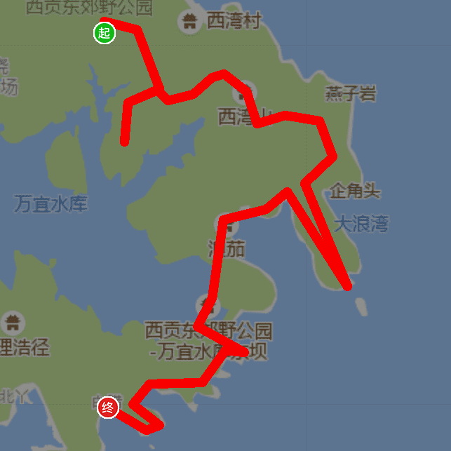 西湾亭→螺地墩(看蚺蛇尖和大浪四湾)→蠄蟝石→西贡三尖三睇鱼岩→钻各种洞[偷笑]→曾棚角时光隧道(看饭甑洲)→浪茄湾→万宜水库大坝→破边洲(看孖洞)→白腊村