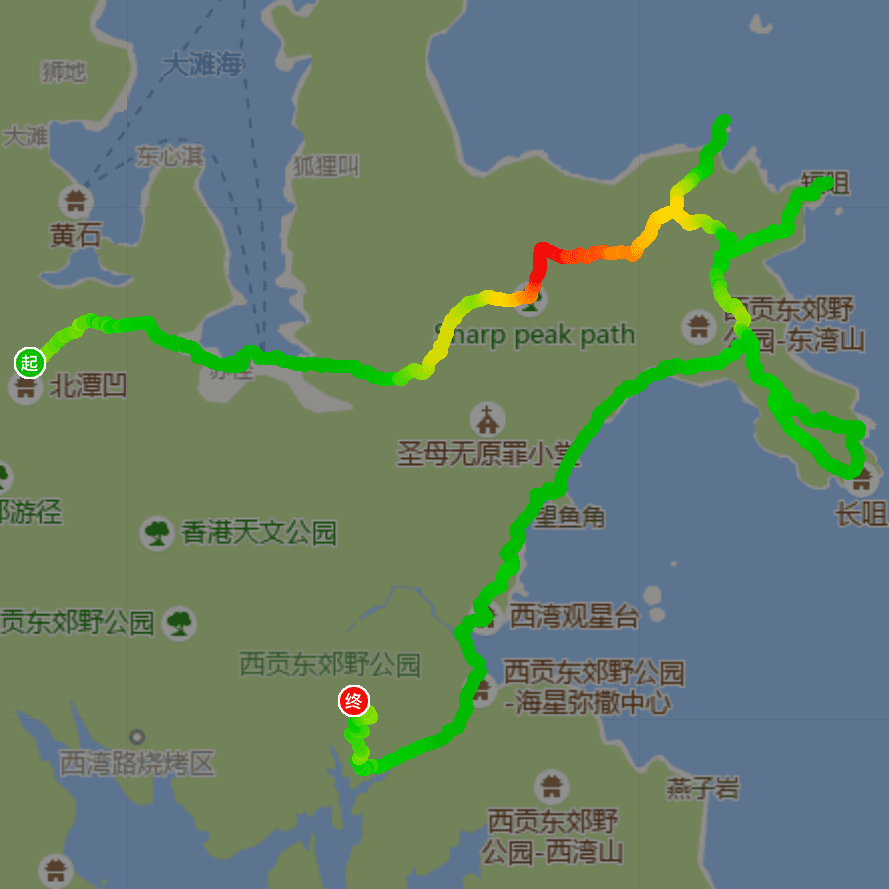 此次为反走起点西湾亭,终点北潭凹