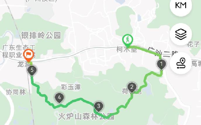 柯木塱地铁站-火炉山东北门-白架顶-猪头石-龙洞地铁站。大约一个半小时走完。