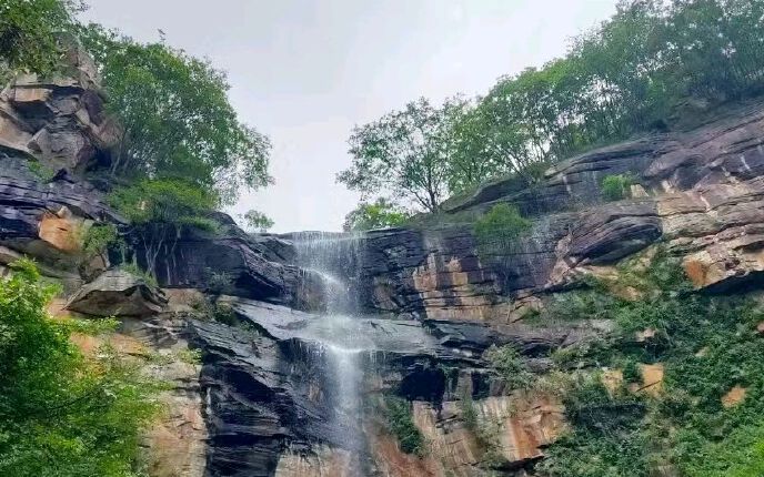 三天门瀑布壮美,瀑水从120余米悬崖凌空飞下,疑是银河落九天。