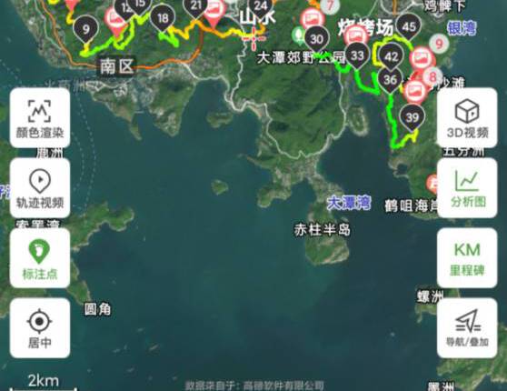 港岛径(最美城市远足径)香港四大远足行山径之一港岛径是香港四大远足行山径中最短的一条,全长50公里,由西向东贯穿香港岛,西起太平山顶炉峰峡,东至大浪湾,共分为8段。其第八段龙脊远足径被《时代周刊》(亚洲版)评为"亚洲最佳市区远足径",可俯瞰南中国海、石澳等景观。全线无露营设施,适合单日徒步,难度评级以★★(中等)为主,沿途设有每500米一个的标距柱系统(H001-H084)。