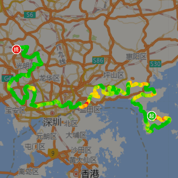 这是一条贯穿深圳东西,跨越深圳所有行政区的户外穿越路线,起点大鹏半岛国家地质公园,途经七娘山,大雁顶,望郎归,东西冲海岸线、西贡村、抛4狗岭、半天云,南澳、英管岭、观音山、大鹏油库、求水岭,钓神山、排牙山、坝光村、三杆笔、大笔架山、火烧天、土地庙,界碑、田心山、新塘村、咸头岭、葵涌文化公园,再上犁壁山、从赤澳岭横穿整个马峦山到达碧岭,再上打鼓岭,鹅公髻、从小三洲上梅沙尖,直奔园山嶂顶、园山主峰,从谭仙庙上香梅岭,再从梧桐山二线关登山口沿着攀云径梧桐山,再从好汉坡下到广场,沿着十里杜鹃直穿小梧桐山,从犁头尖下到仙湖植物园,再从东湖公园西门出来,步行一段街道后从武警医院上银湖山,开始穿越银梅塘茶,再从王京坑沿着大象石登顶羊台山,从风门坳下到应人石,步行绿道到达白芒村后转入牛城村,然后沿着宝石路绿道进入铁钢水库绿道,在经平峦山下到洲石路富源学校,然后进入凤凰山,途径大茅山到达飞云顶,继续沿着凤凰径一路向西,途径阿婆髻水库回到石岩湖,转入大雁山进入大顶岭绿道到达光明水库,最后沿着城市与水库绿道一路漫行,最终抵达深圳最西边的罗田森林公园,全程330公里,累计爬升16000米,与世界超级越野赛巨人之旅相当,走完比分手还要痛苦,故称鹏城绝恋!