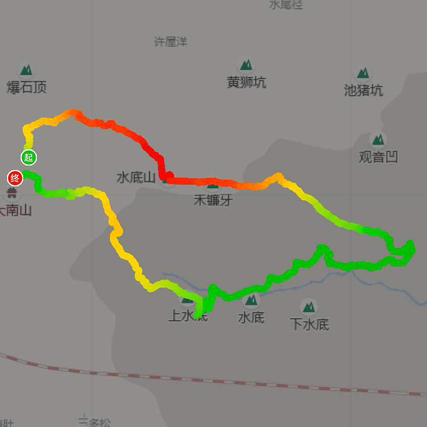 走拉胡线,兴记农家乐出发,到山顶后走龙岩寺方向,不走机耕路,到龙岩寺走路去起点兴记农家乐。