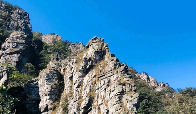 虽然茶岩顶名气不及船底顶,但风景却不逊色。这里沟壑纵横、山陡,可用奇、峻、险三字来概括。