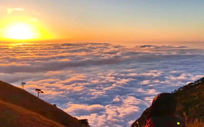 武功山另一大奇景便是“云海”一初见之下,白色的云像棉花一样厚实,在大风的作用下,翻腾涌动的样子,又似海浪一般,橘黄色阳光的打上去,呈现一层细细密密的暖