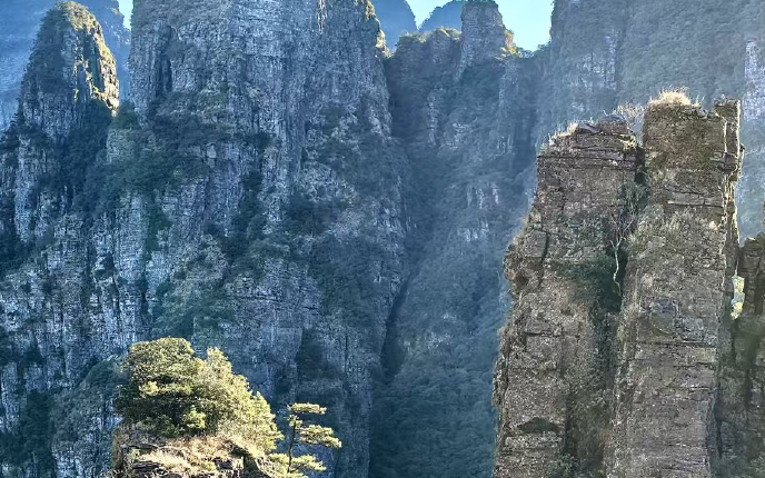 海拔约1400米,山峰陡峭挺拨,四面皆为深峪,