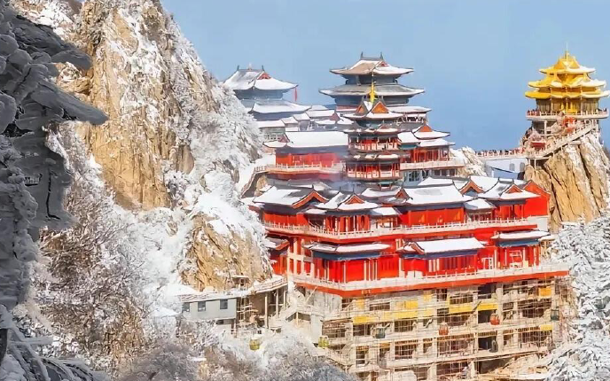 D3:2日早上酒店8点左右出发老君山,自行购买门票100块钱一个人(如果大雪结冰,景区可能封了徒步上山路线,要买230块钱一个人的缆车往返套票),徒步或坐缆车自由选择。徒步大致需要5个小时左右到金顶,(冬季金顶17:50-18:30亮灯,每场时长 7 分钟,共两场)看完灯光下山,山下有很多吃的喝的自己看着办就行。晚上21点左右统一停车场集合返回深圳/东莞。