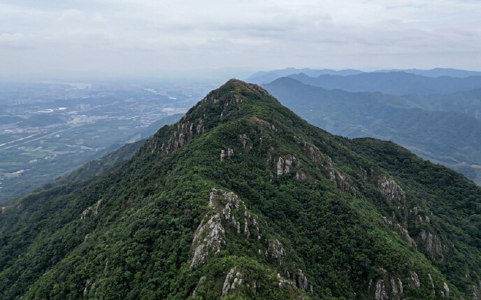大帽山位于广东省清远市清城区牛鱼嘴原始生态风景区内,是清远市区近郊最高峰(海拔778米),以险峻丹霞地貌和原始森林著称,山顶提供360度全景视野,可俯瞰北江和城市景观。山形酷似金字塔,拥有原始森林、石英砂岩悬崖及丹霞地貌,被户外爱好者称为“清远K2”。核心景观包括“大风口”(锯齿状峡谷)和东山脊线,怪石嶙峋,适合摄影探险。