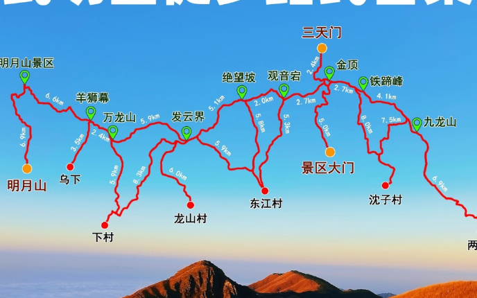 Day3:发云界-万龙山-明月山景区(到明月山景区不想下台阶可坐索道70)、21.5km