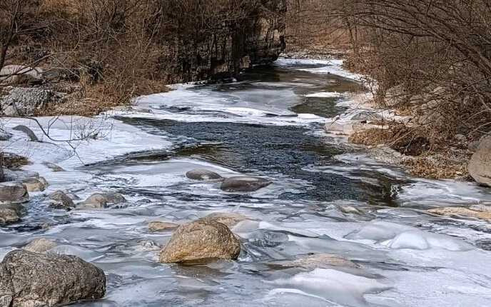 后河后山深处的冰河世纪,苏家河,神隐谷,三岔河,是后河北部的重要支流。寒冷的冬季,河流被冰冻覆盖,奶白色的冰面覆盖了整个峡谷,甚至将两旁的石头、灌木、黄草紧紧冻在一起。你可以在冰面上滑行,听着山风呼啸,看着连绵的群山和远处的蓝天,感受时间的静止和景色的凝固。冰冻的湖面是天然的溜冰场,奇特的气泡冰、残留的白雪、两岸的群山,让人惊叹大自然的杰作