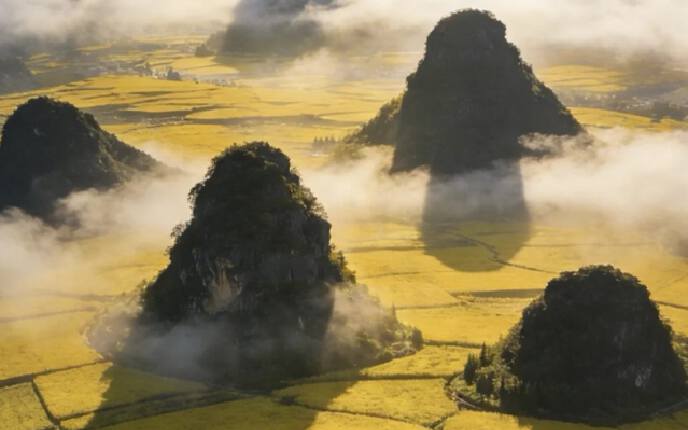 第九天3月7日(周六)坝美—九龙瀑布—金鸡峰油菜花田—罗平,上午前往九龙瀑布,后前往最美金鸡峰油菜花田金黄色的油菜花俨然成为一个调色盘,色彩分明,住罗平。