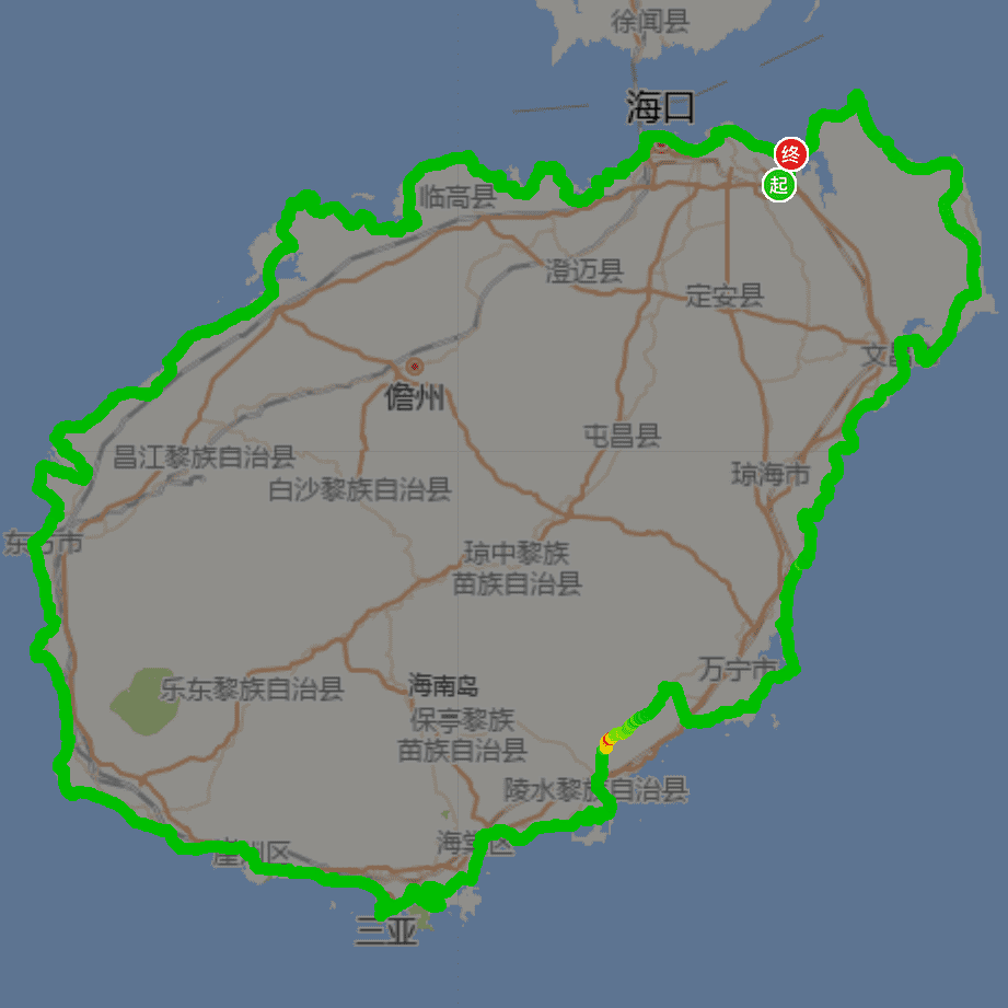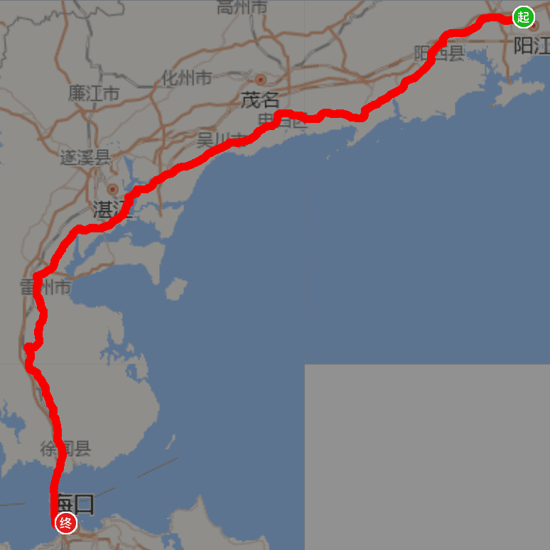 全程约1800km(其中:阳江至海口往返约750km,环海南岛约1050km【西进东出】)。说明:本骑行路线为暂定规划路线,路况不明,尚未走过,始于探路性质,具有一定的风险。在骑行过程中根据队友的体能情况,可作适当调整。