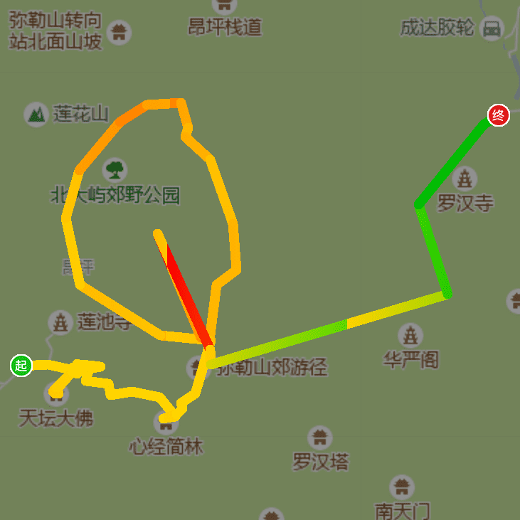 昂坪公交总站→大佛→心经简林→凤凰径→弥勒山顶→弥勒山顺转一圈→法门古道→石门甲,全程约12公里。i