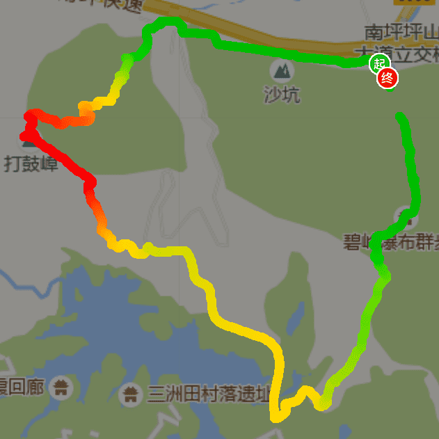 详细路线:马峦山西北门 → 碧岭瀑布群 → 马峦山瀑布群 → 东部华侨城1号观景台 → 打鼓嶂 → 回到马峦山西北门