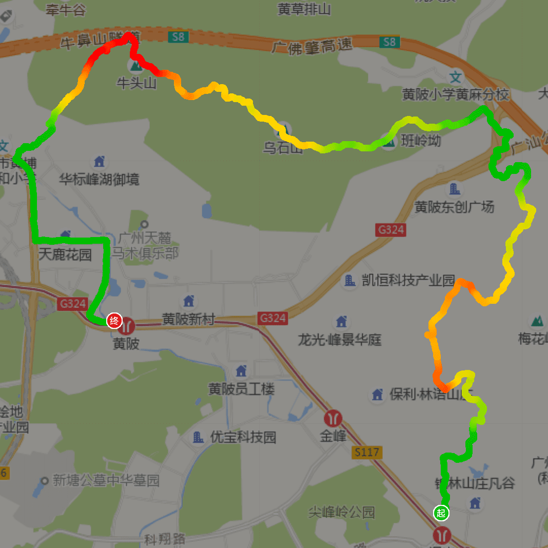 暹岗地铁站--暹岗大山--黄麻村--小长城--牛头山--黄陂地铁站