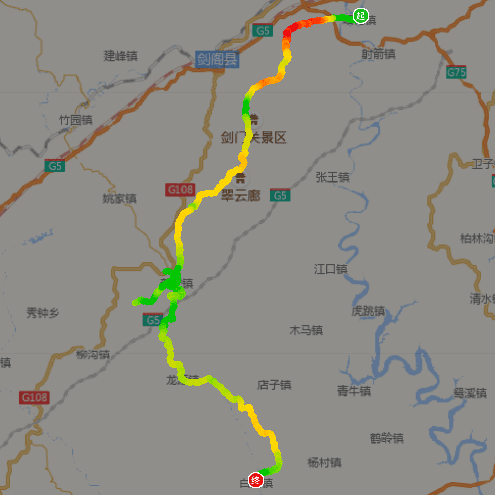 路线:剑门关镇 → 抄手铺 → 汉阳镇 → 翠云廊