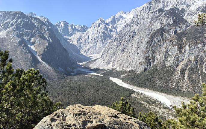 干河坝是玉龙雪山主峰扇子陡南侧的一个典型阿尔卑斯式 U 型峡谷,地理环境原始且景观随季节变化显著,主要特征包括: